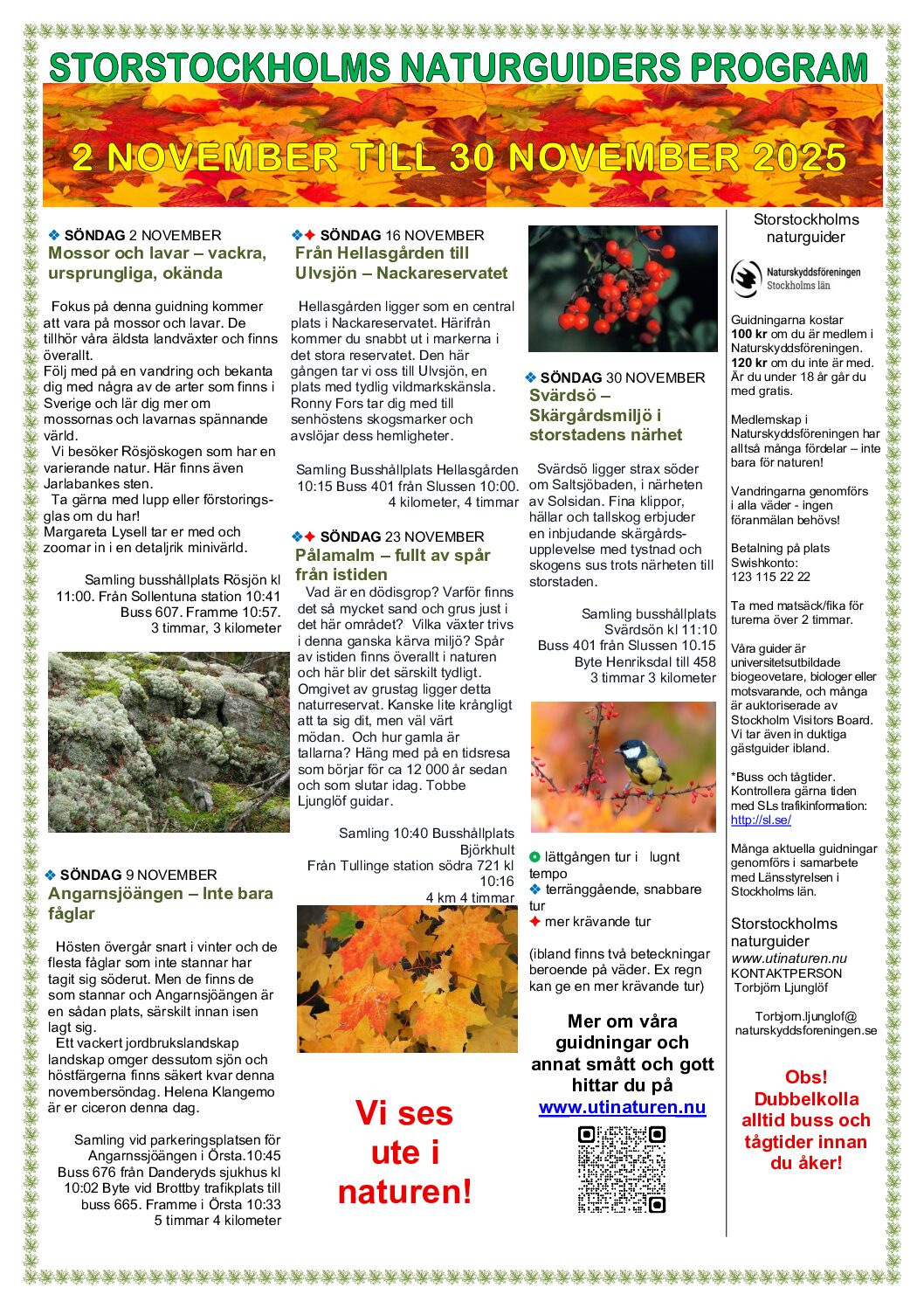 Sprid gärna detta och kommentera gärna era upplevelser på vår sida ”Storstockholms Naturguider” på Facebook. Har du synpunkter får du gärna mejla mig på torbjorn.ljunglof@naturskyddsforeningen.se.